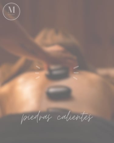 Masaje con piedras volcánicas 75min, el calor ayuda a relajar los músculos, ideal para quienes cargan estrés físico o emocional profundo